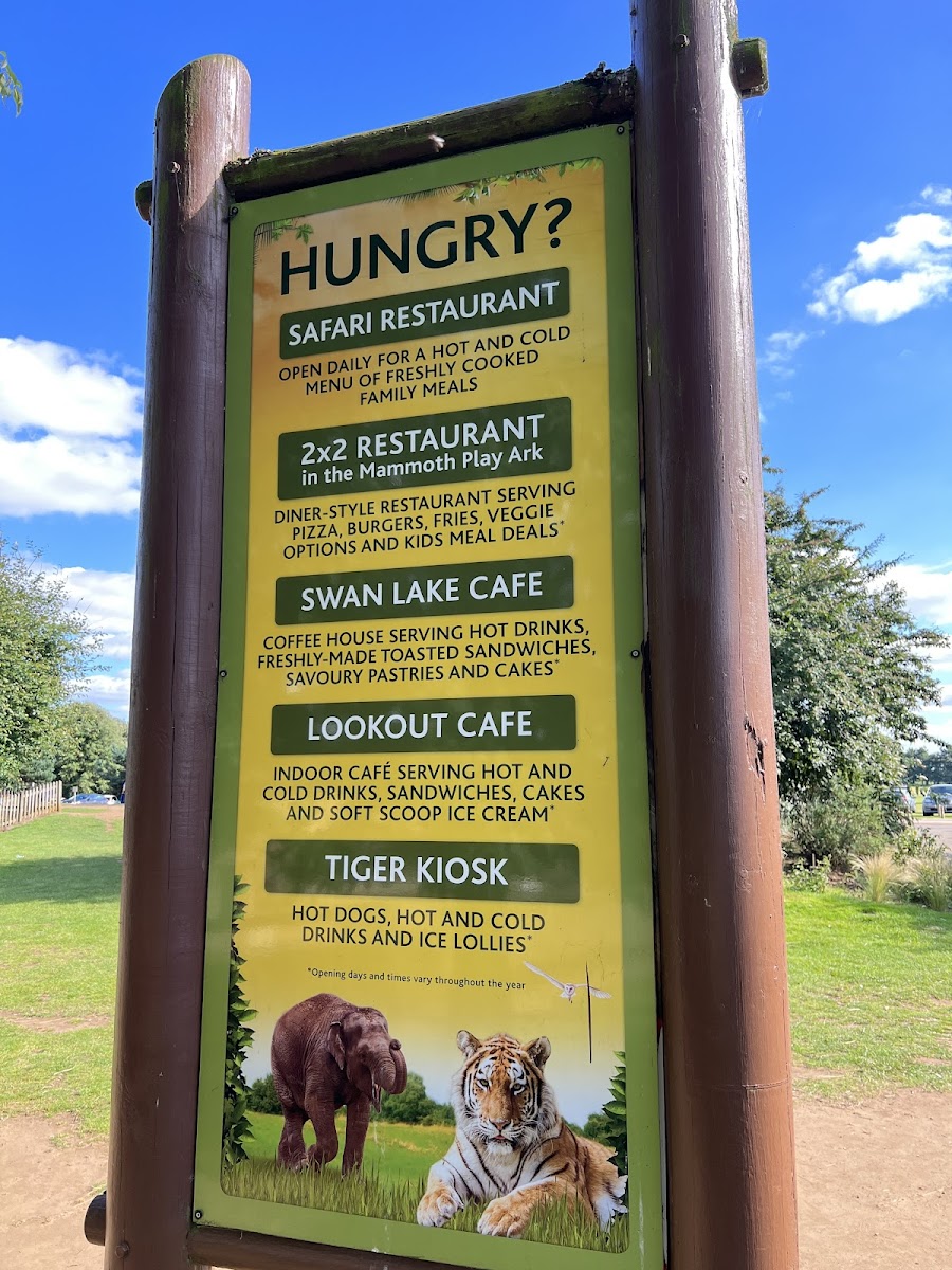 The menu at the Swan Lake Cafe - Woburn Safari Park offers a selection of light meals and beverages suitable for casual dining and quick stops. Food options include a variety of toasties such as Cheese, Tuna Melt, and Ham & Cheese, providing simple and convenient choices for a light meal.
